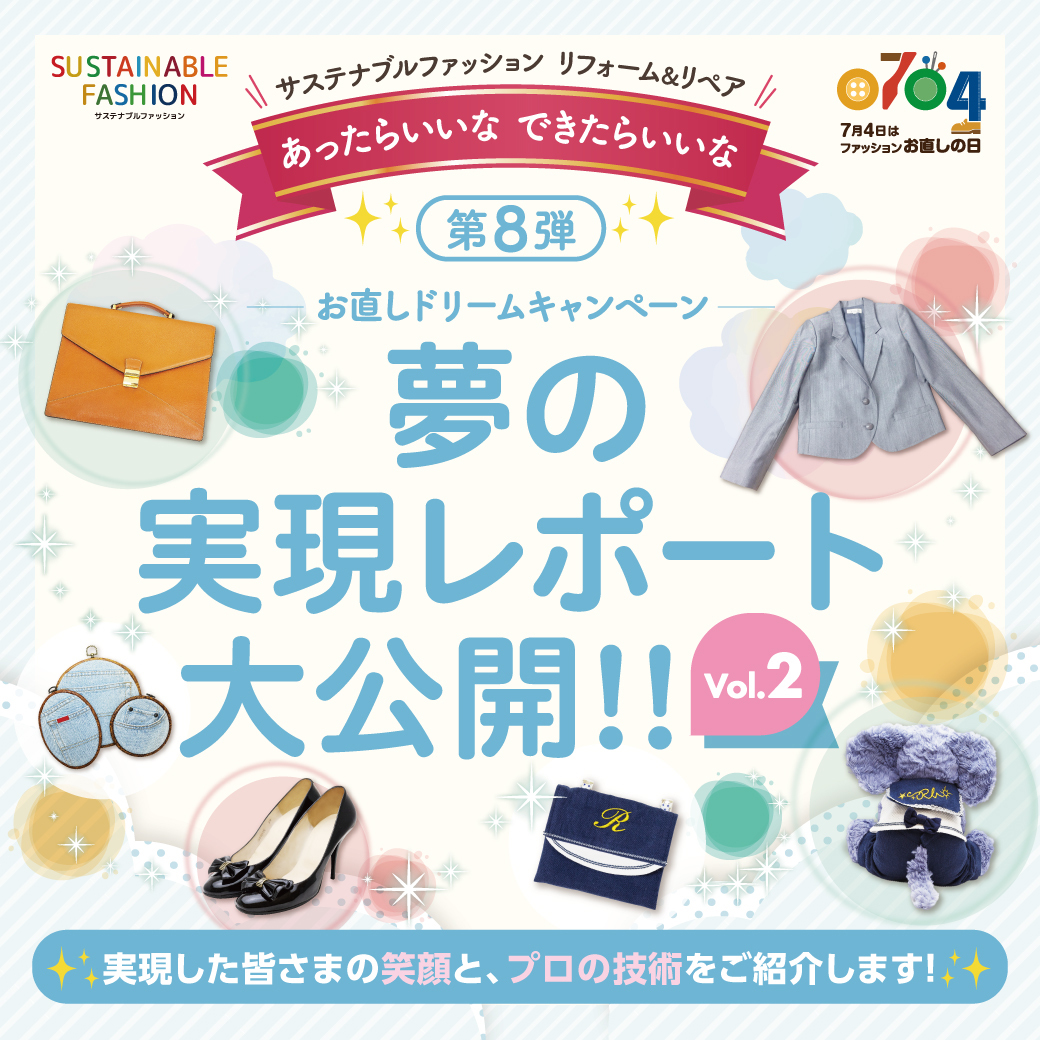 お直しドリーム第8弾 vol.1公開! 2023.07.04 キャンペーン お直しドリームキャンペーン第8弾☆Vol.1 夢の実現レポート大公開!! 靴・バッグ・洋服など・・・ ファッションリフォームで叶えたい夢、 たくさんのご応募をありがとうございました! 夢を実現した皆さまの笑顔と プロの技術を大公開中です♪ 是非ご覧ください!