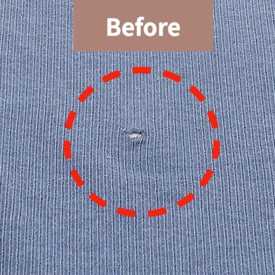 同じ生地から繊維を取って織り直すことで、穴を塞ぐことができます!